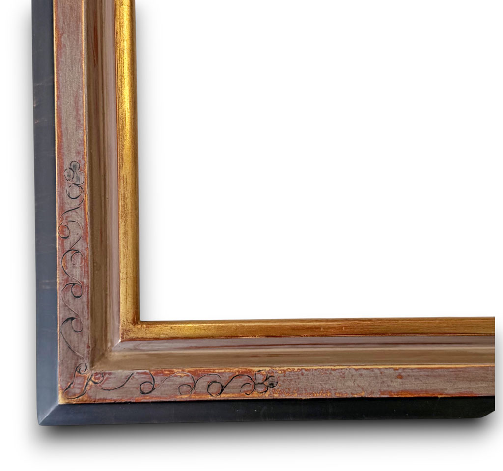 Filet or plat vieux blanc gravé extérieur noir griffé