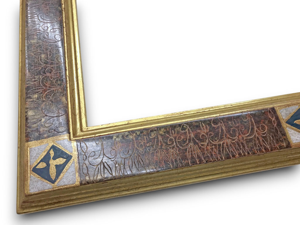Sculpté grec or filets bleu pierre