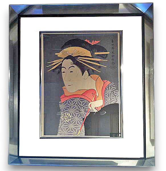 Cache clous argent vif filet noir (ici photographié sur fond blanc) (estampe japonaise)