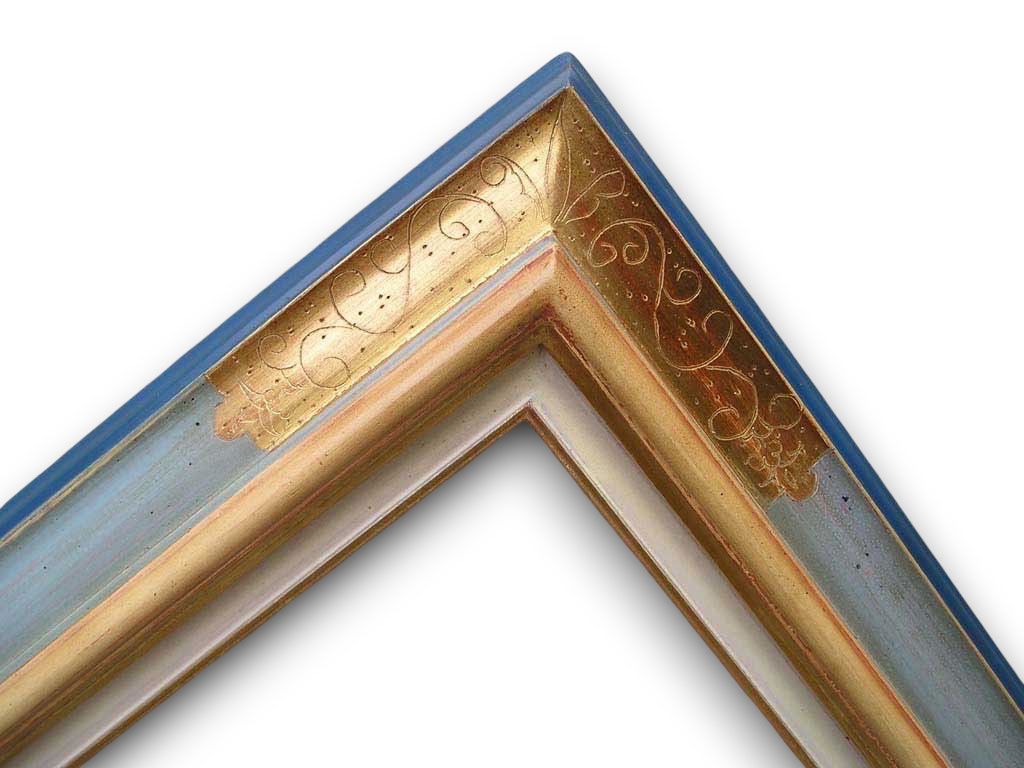 Heba vieux bleu brossé boudin or traces de feuilles